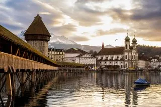 Люцерн — красивый город с историческими зданиями, деревянным мостом Капелльбрюкке и потрясающими видами на Альпы.
