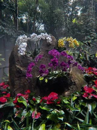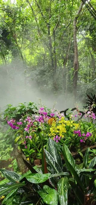 🌴 Экскурсия начинается с прогулки по оборудованным тропам и подвесным настилам, проложенным сквозь настоящие тропические джунгли. Вокруг — гигантские деревья, скальные образования, ручьи и каскады водопадов, а над головой — плотная крона леса. Здесь сохранилась уникальная экосистема, где растут редкие реликтовые растения, включая алсофилы, целебную ганодерму и другие виды, которым насчитываются сотни и даже тысячи лет.