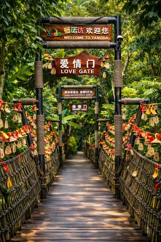 🚐 После выезда из отеля вы отправляетесь в парк Янода — один из самых известных тропических лесов Хайнаня, спрятанный среди горных склонов и густых джунглей. По мере приближения курортные пейзажи сменяются зелёными долинами, лианами и влажным тропическим воздухом, создавая ощущение путешествия в дикую, нетронутую природу острова.
