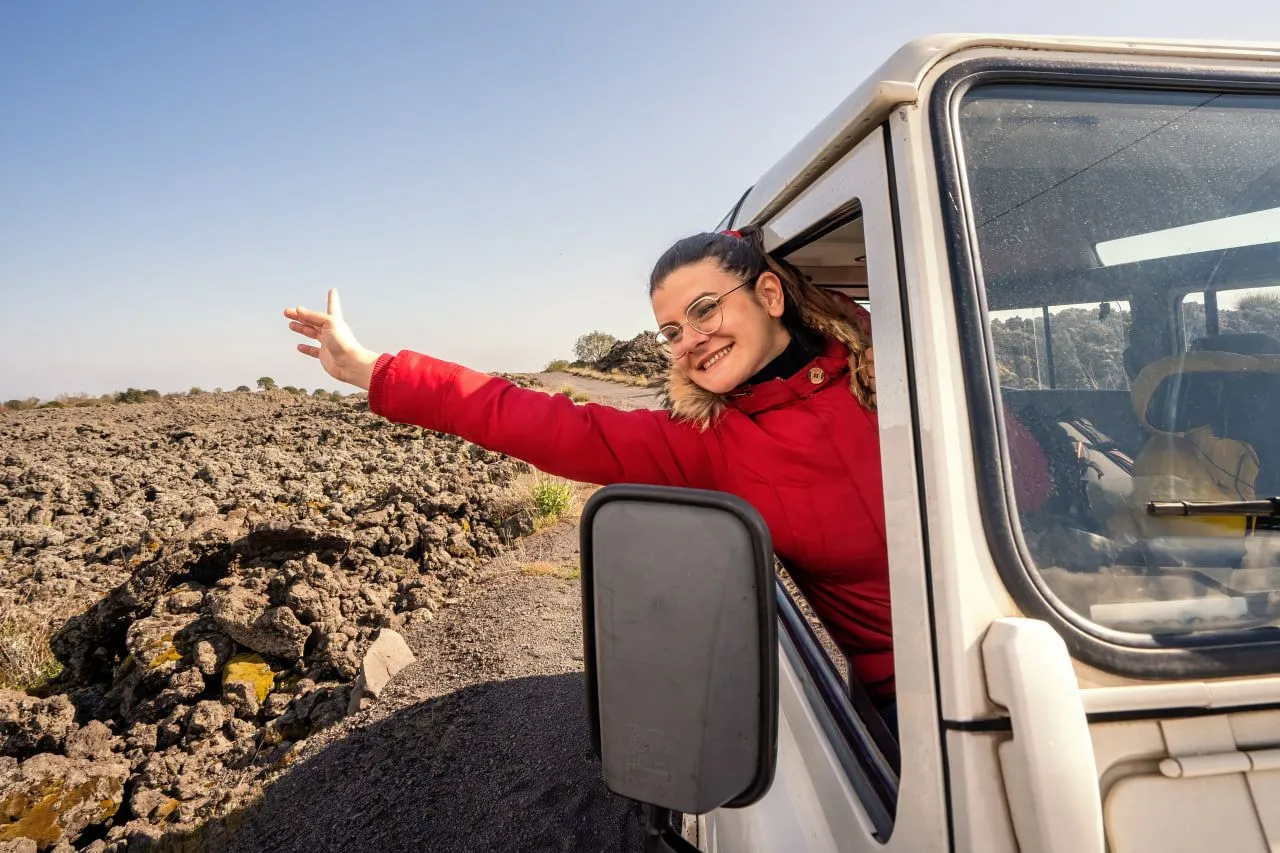 Нет, основная часть маршрута проходит на полноприводном джипе 4×4. Пешие прогулки возможны только на смотровых площадках и лавовых полях для фото и осмотра локаций.