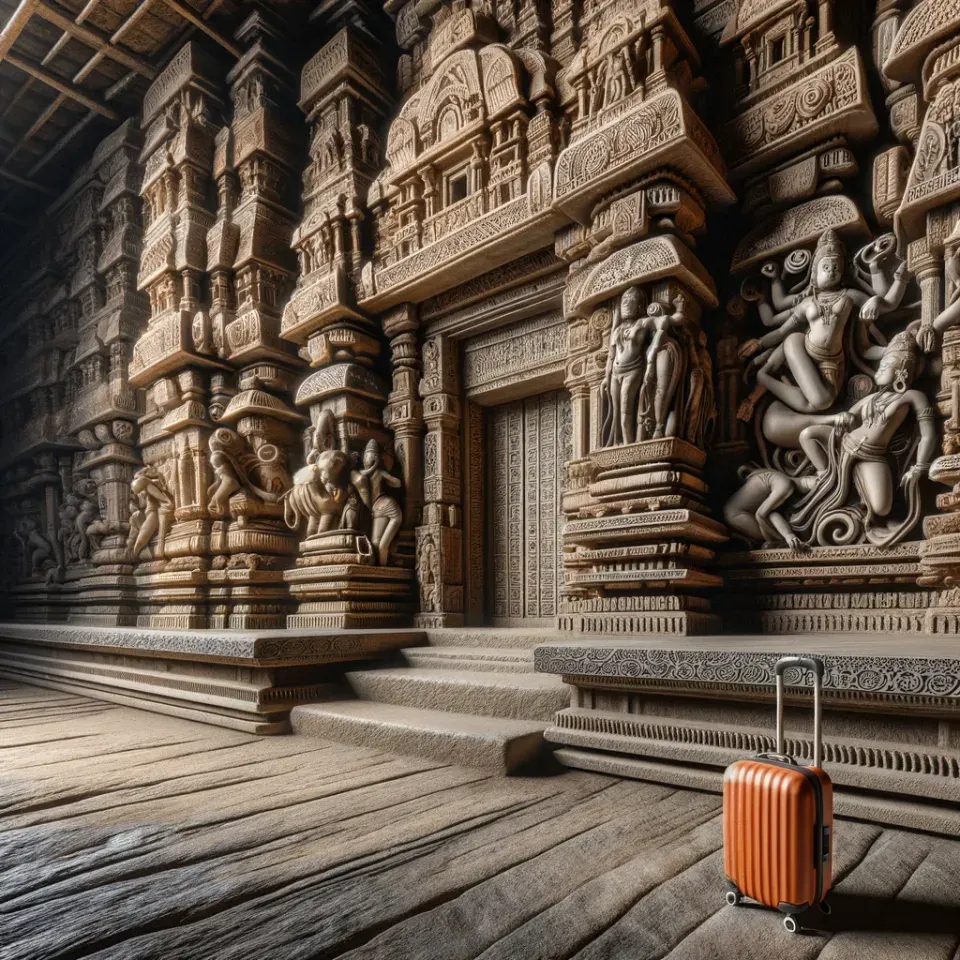 Интерьер храма также поражает своим художественным богатством. Внутренние залы и святилища украшены многочисленными скульптурами и резными панелями, создавая атмосферу духовного величия и красоты. Главное святилище с его детализированной резьбой и скульптурами создает ощущение священности и божественного присутствия.