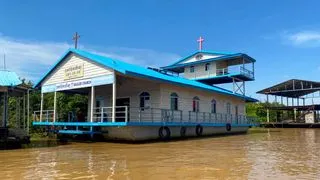 Главная точка экскурсии. Здесь всё построено на воде: дома на сваях, школы, магазины, храмы и плавучие рынки.