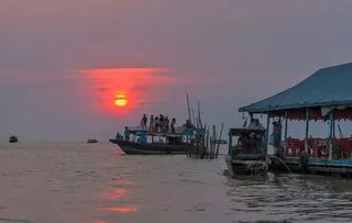 - Закат на озере Тонлесап