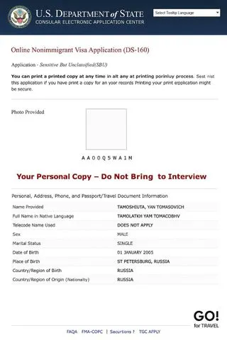 После заполнения анкеты вы получите уникальный номер (Application ID) и сможете распечатать страницу подтверждения — она обязательна для собеседования.