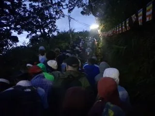 Местные поднимаются семьями, от младенцев, что несли на руках, до стариков которые еле волочили ноги. Насколько я понял подъём на пик Адама считается священным действием кое очищает от грехов. Чем уже становилась лестница, тем больше я зависел от скорости окружающих, ведь когда лестница превратилась в 2 метра шириной, то обогнать старушку с клюкой, которой помогает другая старушка, нет никакой возможности.