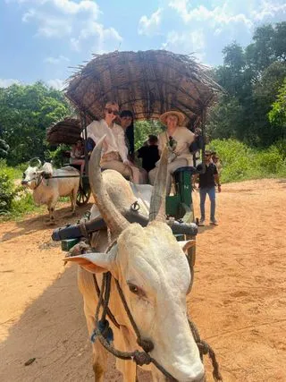 Следующим пунктом будет поездка на телеге, запряженной буйволами 🐃. Эта увлекательная поездка подарит вам неповторимые ощущения и возможность насладиться живописными пейзажами окрестностей.
