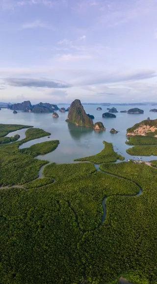 Вы сядете в каяки и проплывёте по лагуне и сквозным пещерам острова Хонг. Тихая гладь воды, нависающие скалы и ощущение полного уединения.