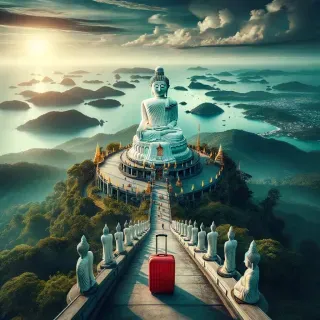 Храм Большого Будды возвышается на вершине горы Наккерд и (геолокация и отзывы) является не только важнейшей достопримечательностью Пхукета, но и духовным центром для многих паломников и туристов. Огромная статуя Будды, высеченная из белого мрамора, достигает высоты в 45 метров и видна почти с любой точки острова, символизируя мир и благосостояние.