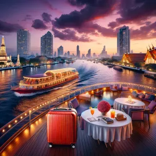 Окунитесь в волшебный мир вечернего Бангкока, плывя по волнам реки Чао Прая на роскошном трёхпалубном лайнере. Этот вечерний круиз предлагает уникальную возможность увидеть блистательную столицу Таиланда под новым углом, сочетая роскошь, комфорт и культурное обогащение.