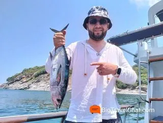Далее — снорклинг в бирюзовых водах у побережья, где вас ждёт встреча с кораллами и тропическими рыбами. В 12:00 команда приготовит для вас обед на борту — из свежевыловленной рыбы: гриль, сашими, том-ям с морепродуктами, рис, фрукты и прохладительные напитки. После обеда продолжается рыбалка на обратном пути, чтобы каждый смог поймать свой трофей. К 15:30 лодка возвращается на пирс — время для фото с уловом и командой, чтобы запечатлеть удачный день.