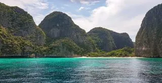 Маршрут проходит дальше к Майя Бэй, культовой бухте, где снимали фильм «Пляж». Сейчас купание в самой бухте запрещено, однако гости могут пройтись по пляжу, посмотреть на бирюзовую воду и сделать фото легендарного места.