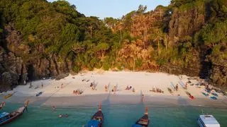 Затем маршрут ведёт на остров Бамбу, уединённое место с мягким песком и отличными условиями для снорклинга. Далее катер останавливается у знаменитой бухты Майя Бэй, окружённой величественными скалами. Высадка на берег ограничена, но лодка делает остановку поблизости — отличная возможность для фото. Следуют короткие остановки в лагуне Ло Самах и лагуне Пи Ле, окружённых высокими скалами и тёплой изумрудной водой — идеальные места для купания с лодки.