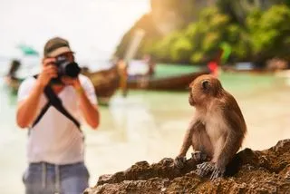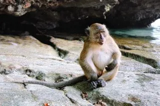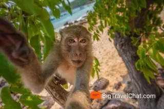 Следующая остановка — пляж с обезьянами, где обитают макаки. Они свободно гуляют по берегу, и важно соблюдать дистанцию.