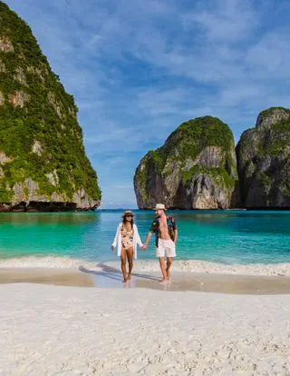 Следующим этапом вашей экспедиции станет переход к другому острову — загадочному и мистическому Пхи-Пхи Лей. Узкая дорожка пролегает между высокими гранитными стенами, образуя эффектную арку, ведущую внутрь острова. Первое, что попадёт вашему взгляду, — знаменитая Пещера Викингов, украшенная рисунками древности и дающая представление о культуре первых жителей этих земель. Затем вы окажетесь в узких каналах лагуны Пиле, чей кристально чистый водоём выглядит совершенно сюрреалистично, вызывая восторг даже у бывалых путешественников. И наконец, ваш взгляд устремляется к главной цели визита — Майя-Бэй, знаменитому пляжу, где снимался фильм «Пляж».