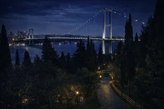 🌃 Вы увидите, как Европа и Азия соединяются в огнях ночной иллюминации. Мост переливается цветами, а пролив под ним отражает свет мегаполиса — зрелище, которое невозможно забыть.