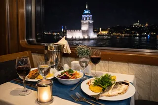 Во время круиза вас ждёт полноценный ужин на борту. Подаются традиционные турецкие закуски (мезе), свежий салат, горячее на выбор — рыба, курица или котлеты, а также десерт и напитки. Всё это — под аккомпанемент живой музыки и с видами на ночные панорамы Стамбула.