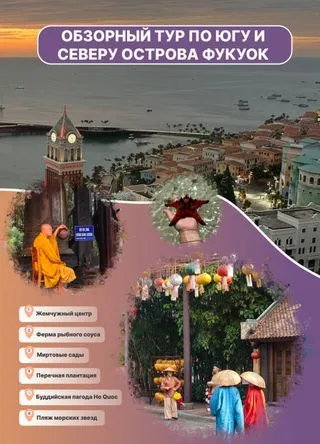 Фукуок — это место, где вьетнамская культура и природа сочетаются с современными удобствами, предлагая туристам идеальный отдых. Этот тур знакомит с ключевыми достопримечательностями южной и северной частей острова.