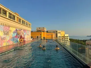 - Бассейн на крыше – захватывающий вид на море и остров, возможность наслаждаться солнечными ваннами и плаванием.