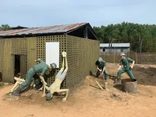 Какие условия содержания были в Тюрьме Фукуок? Ответ: Условия содержания в Тюрьме Фукуок были крайне жестокими. Заключенные страдали от голода, болезней, отсутствия медицинской помощи, а также подвергались физическим и психологическим пыткам. Тюрьма известна своими "тигровыми клетками" и камерами с колючей проволокой, что символизирует бесчеловечное обращение с пленными.