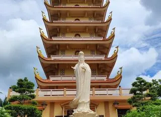 🕉️ Дальше — духовная часть маршрута. Мы едем в храм Винь Нгием — один из самых красивых буддийских храмов Хошимина, где чувствуется тишина, гармония и спокойствие даже в большом городе. По желанию его можно заменить на храм Нефритового Императора — он совсем другой по настроению, с яркими деталями и выраженной китайской архитектурой.