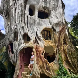 Сказочный арт-дом без прямых линий, где всё выглядит как фантазия архитектора: башни, мостики, лестницы и окна причудливых форм. Здесь почти каждый метр — готовая фотозона, поэтому фото будут яркими и необычными.