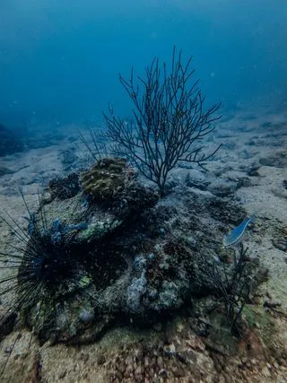 Первое место погружения — коралловый риф, где можно увидеть ярких тропических рыб и разнообразных морских обитателей. Это идеальный вариант для начинающих дайверов: неглубокие воды, спокойные условия и удивительная красота подводного мира.