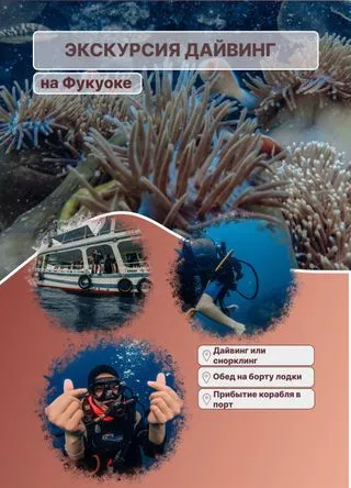 Дайвинг на Фукуоке — это настоящий шанс окунуться в мир красочных кораллов, морских обитателей и тишины морских глубин. Тур привлекает как новичков, так и опытных дайверов — благодаря комфортной организации и внимательным инструкторам.