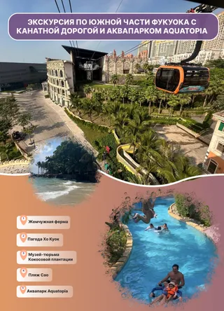 Экскурсия по южной части Фукуока с канатной дорогой и посещением аквапарка — это великолепная возможность совместить культурные и исторические открытия с активным отдыхом. Посещение жемчужной фермы, пагоды Хо Куок, музея-тюрьмы Кокосовой плантации и пляжа Сао подарит незабываемые впечатления и позволит узнать остров с разных сторон. Завершение экскурсии поездкой на канатной дороге и развлечениями в аквапарке Aquatopia добавляет элемент веселья и приключений. Это путешествие станет идеальным выбором для всей семьи, оставляя вас с яркими эмоциями и воспоминаниями, которые будут радовать вас еще долгое время.