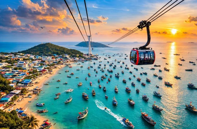 Самая длинная морская канатная дорога в мире, которая соединяет Фукуок с островом Хон Том. С высоты открываются красивые виды на море и острова архипелага.
